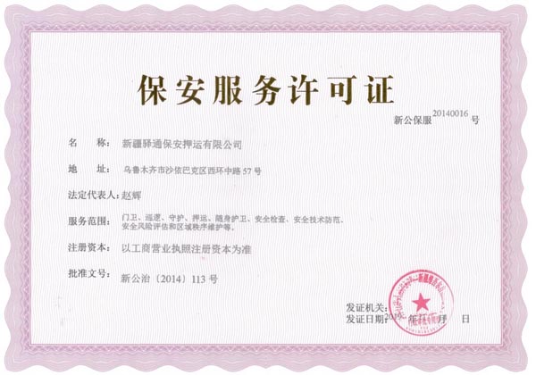 驛通押運(yùn)-保安服務(wù)許可證